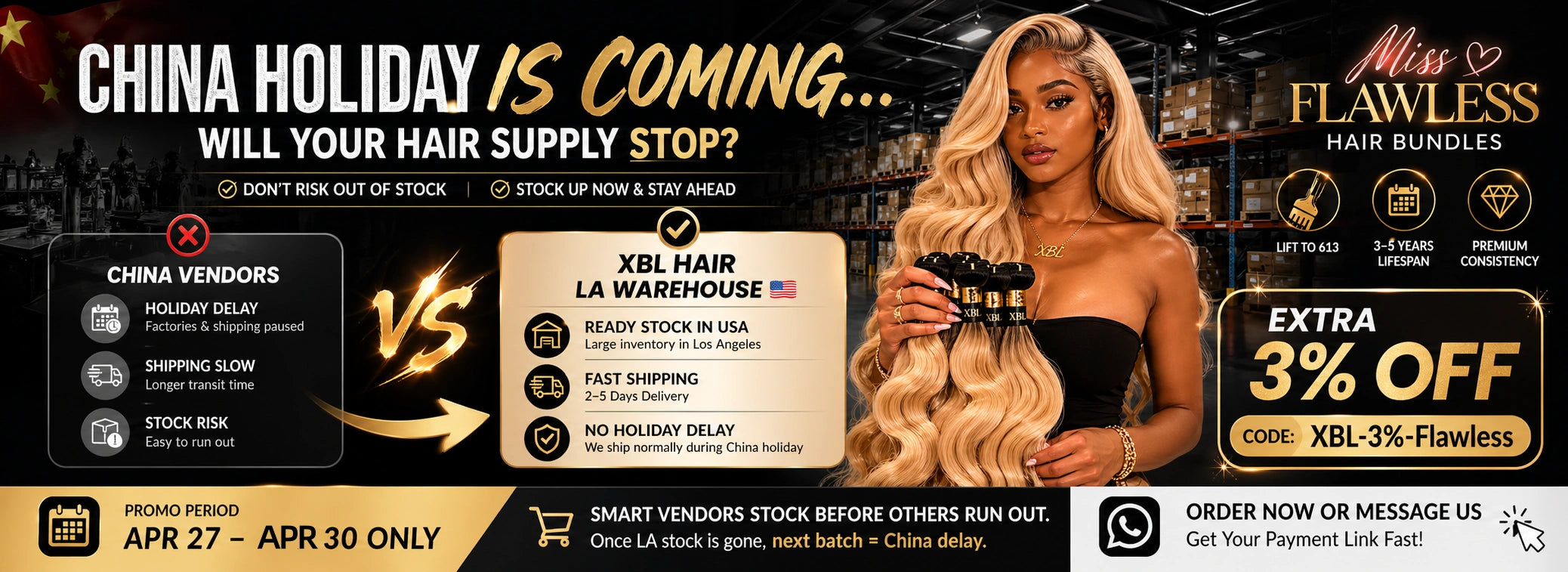 Our new U.S. warehouse site is now live 👉 [xblhairusa.com] for faster local shipping and exclusive wholesale deals.