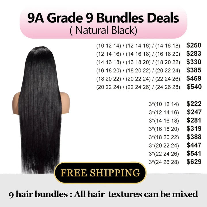 9A is the same qualtiy as 10A grade hair, the difference is 10A grade hair is thicker. It’s very good for customers who don’t want to pay much but still need good hair. All grade are 100% human hair.