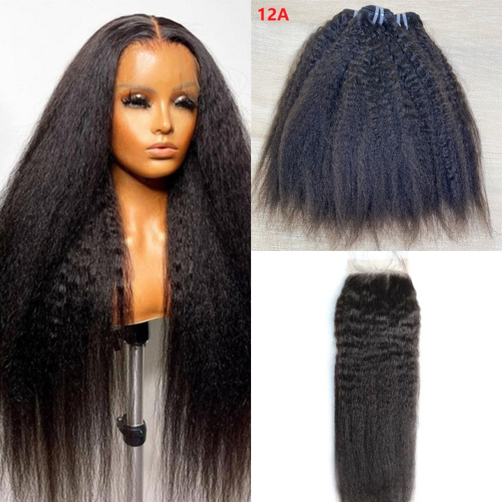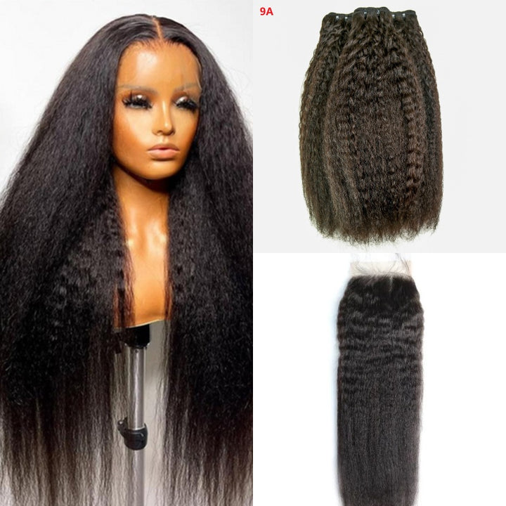 Mèches de cheveux humains crépus et lisses XBL Hair 9A/10A/12A avec fermeture 5x5