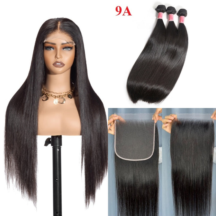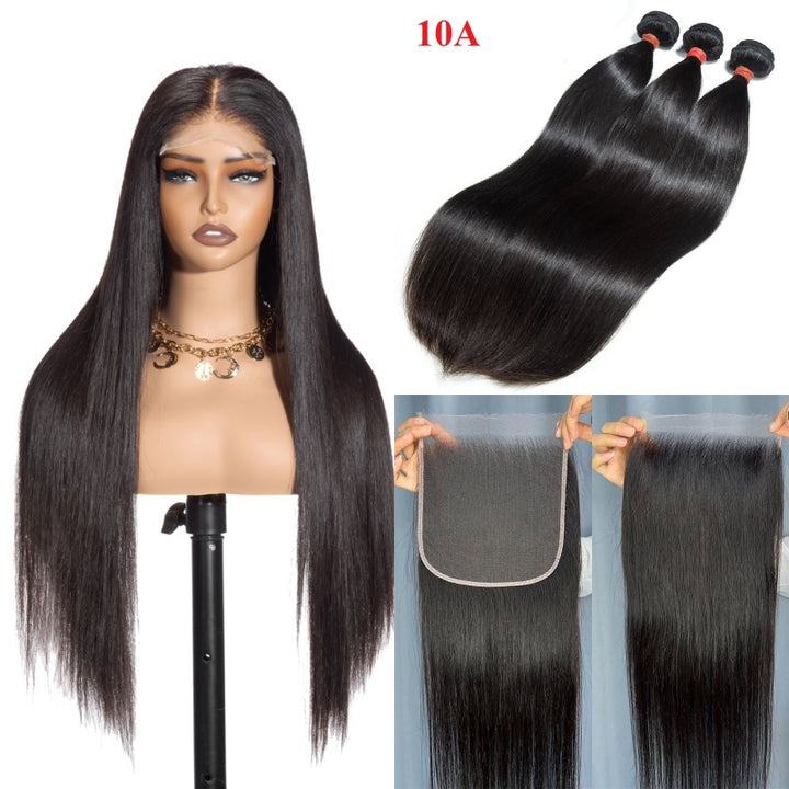 XBL Hair 9A/10A12A 7x7 HD Closure with 3 Straight Human Hair Bundles